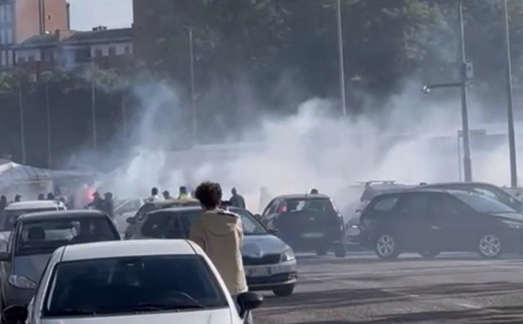 据悉大约有60名球迷卷入其中,警方随即介入,部分球迷已经被拦下。