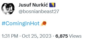 赛后,太阳新援努尔基奇更推道:“开赛季太阳就状态火热。”