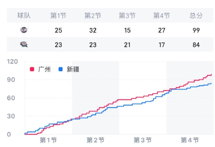 10月25日讯 CBA常规赛,广州以99-84击败新疆。