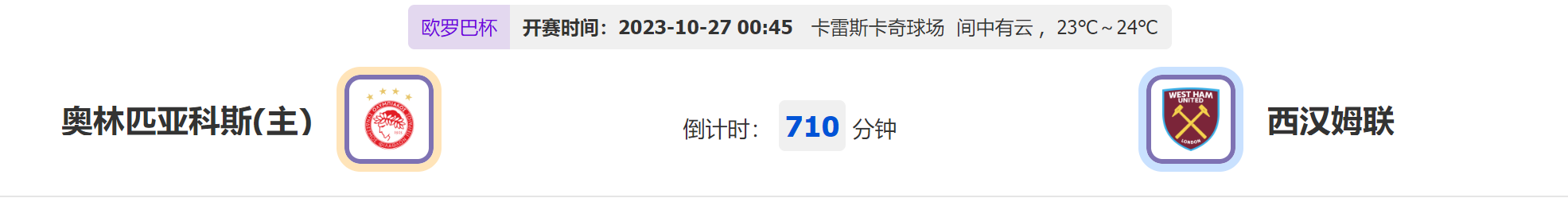 北京时间10月27日00:45,欧罗巴杯小组赛,奥林匹亚科斯vs西汉姆联,西汉姆联目前处于小组第一名的位置,本场比赛只要保持不败便有机会出线,作客面对奥林匹亚科斯是否会全力以赴呢?