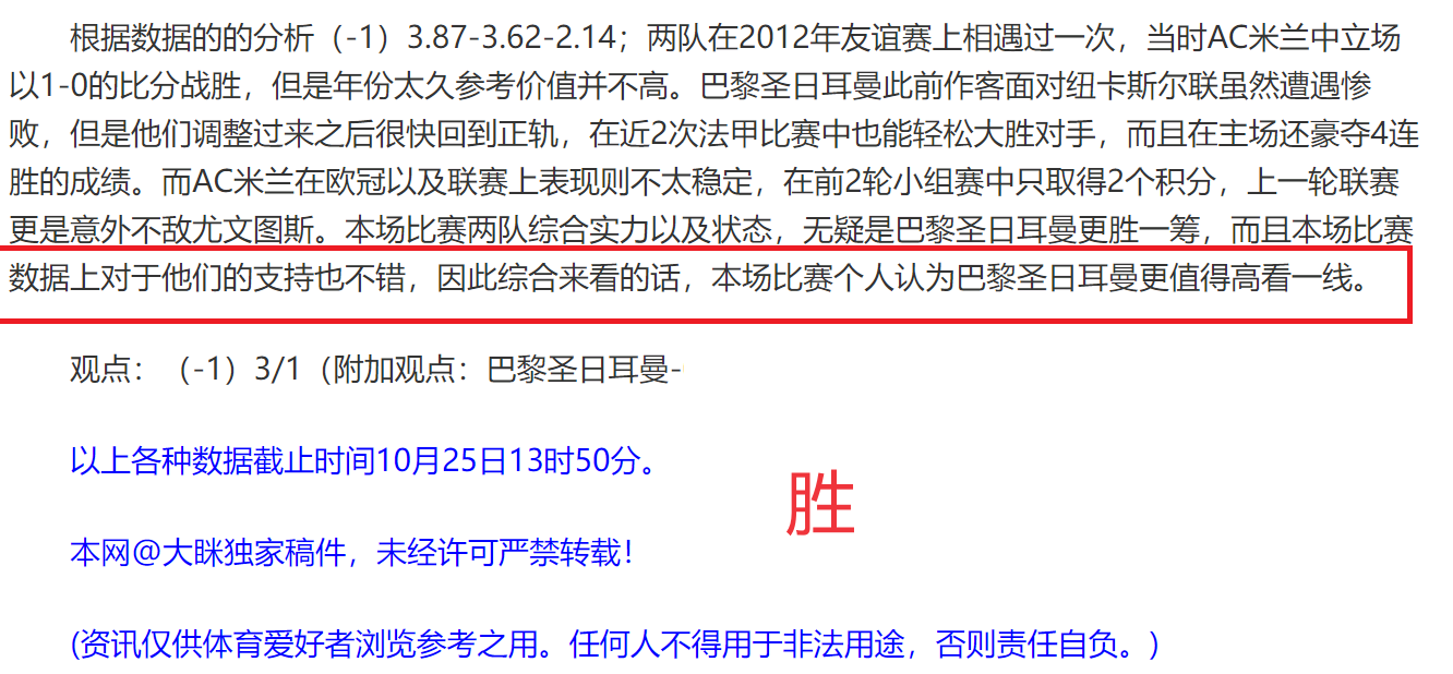 (温馨提示:观点回顾为已完场赛事的统计,并不能代表未来的观点预测结果走势,观点仅为其个人意见,与平.台无关。资讯仅供体育爱好者浏览,并不构成购.彩建议,任何人不得用于非法用途,请广大用户理性消费。)