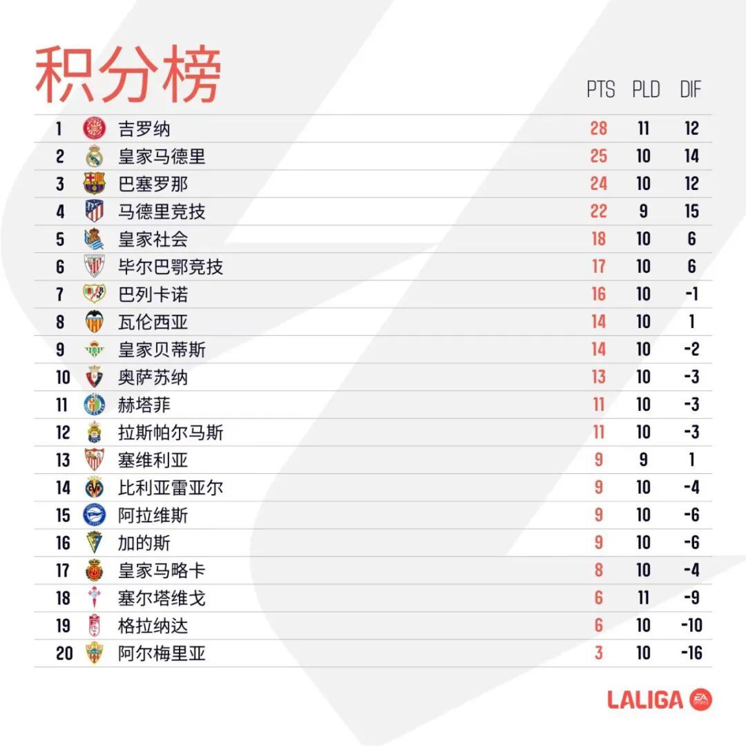 积分榜上,本场比赛获胜的吉罗纳升至第1位,输球的塞尔塔维戈仍然排名第18位。