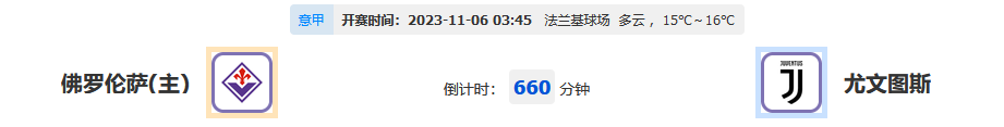 北京时间11月06日03:45,西甲联赛第11轮比赛,佛罗伦萨vs尤文图斯,两队排名虽然有所差距,但是近期成绩较为接近,今天比赛佛罗伦萨能否占据主场优势?