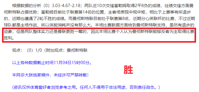 (温馨提示:观点回顾为已完场赛事的统计,并不能代表未来的观点预测结果走势,观点仅为其个人意见,与平.台无关。资讯仅供体育爱好者浏览,并不构成购.彩建议,任何人不得用于非法用途,请广大用户理性消费。)