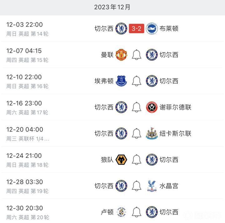 下轮比赛,北京时间12月7日凌晨4点15分,切尔西将赴客场挑战曼联。