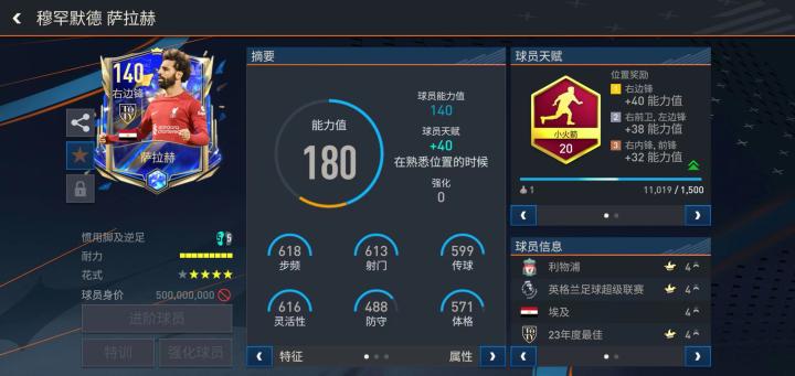 萨拉赫以他的精彩表现在利物浦队成为了锋线核心。而在游戏中,他以边锋的定位处于非常高的位置,其盘带手感和内切得分的能力可以说是非常出色,此外,他的抗干扰能力和平衡性也非常突出。