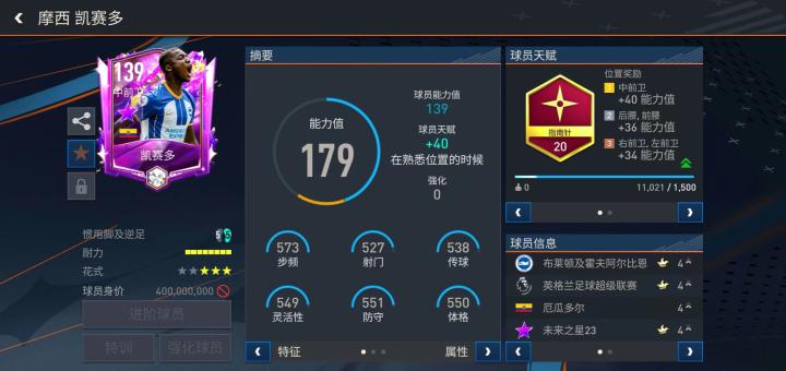 凯塞多在布莱顿队中显示出了非常好的表现,在拦截和抢断两项数据中都相当出色。在游戏中,凯塞多的防守能力十分强悍,而且攻击端的表现同样出色。