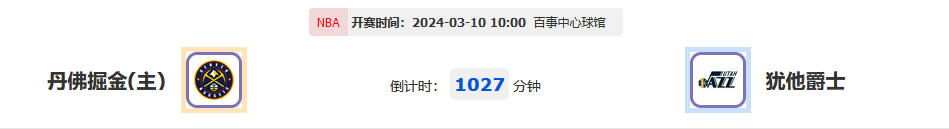 北京时间03月10日10时00分,2023-2024美国男子职业篮球联赛,掘金vs爵士,两队排名有所差距,今天比赛哪一队更胜一筹呢?