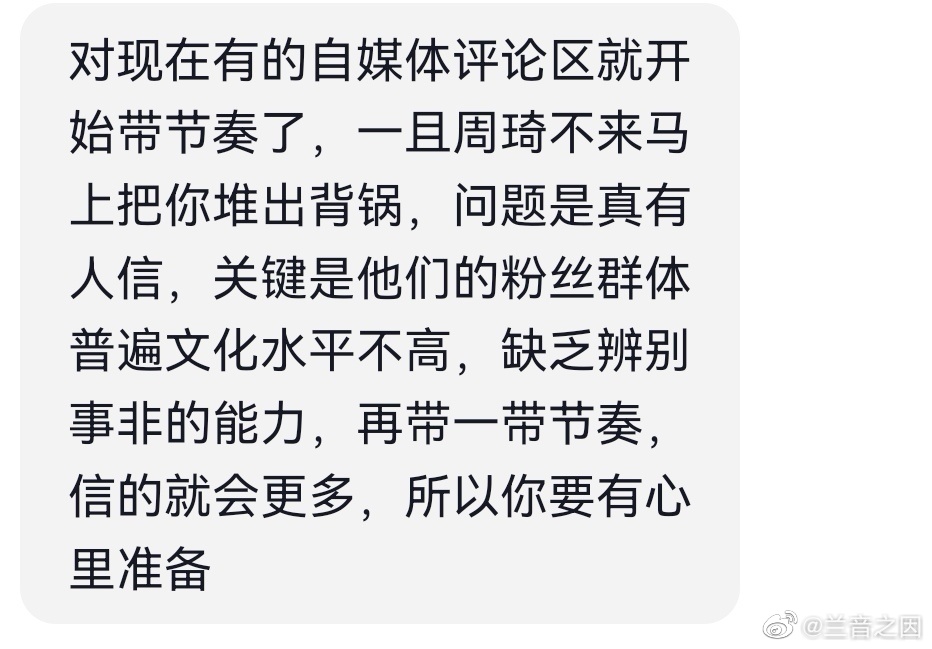 对于周琦和兰音之因之间的争论,许多网友也表达了自己的看法。有人认为兰音之因是在曲解事实,断章取义,而周琦的回应则是化解争议的一种方式。还有人质疑这场争论只是为了制造话题和炒作,对于球员和媒体来说都没有实质性的提升。 无论是从周琦还是兰音之因的言论,都可以看出当事人对于自己形象和利益的保护态度。球员们会通过各种方式来回应媒体的评判和指责,而媒体们也会通过报道和评论来引发公众讨论。这种言论环境下对于事实真相的识别和判断,对于公众来说也变得更加重要。最终,真相还是需要通过时间和事实来验证的。