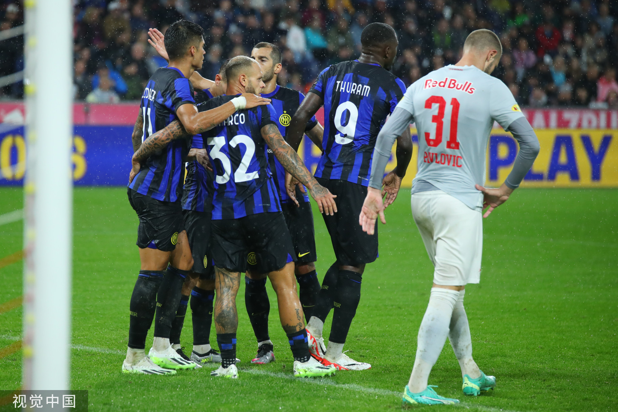 央视网消息:北京时间8月10日1:00,2023年国际足球友谊赛展开角逐,国际米兰对阵萨尔茨堡红牛。上半场索默首秀送点,随后又出击失误,迪马尔科造乌龙,德弗里反超比分,卡里姆梅开二度,科雷亚再度反超,下半场拜多扳平,森西绝杀,最终国际米兰4-3战胜萨尔茨堡红牛。