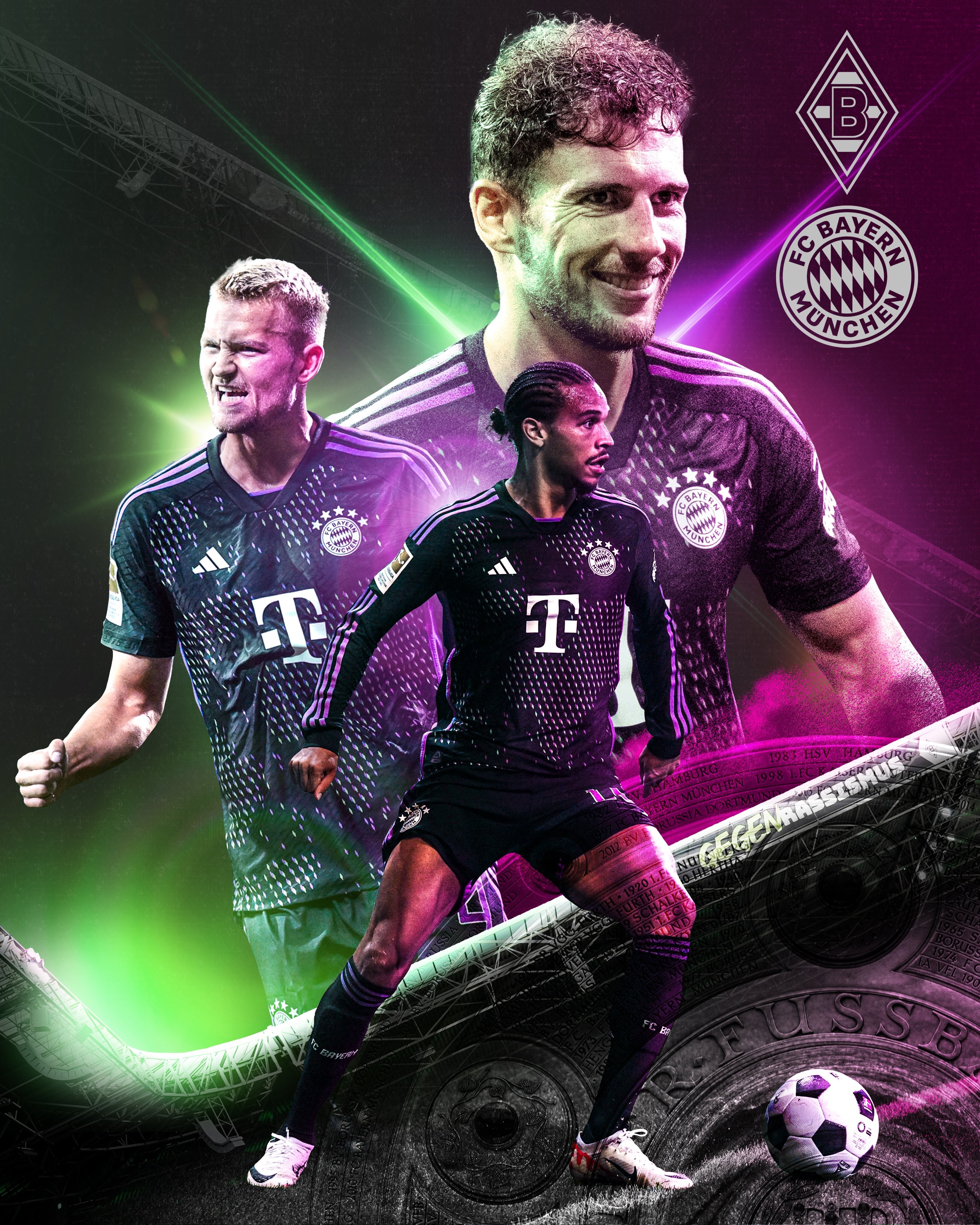 赛前,拜仁官方发布比赛海报,格雷茨卡、德利赫特、萨内出镜。