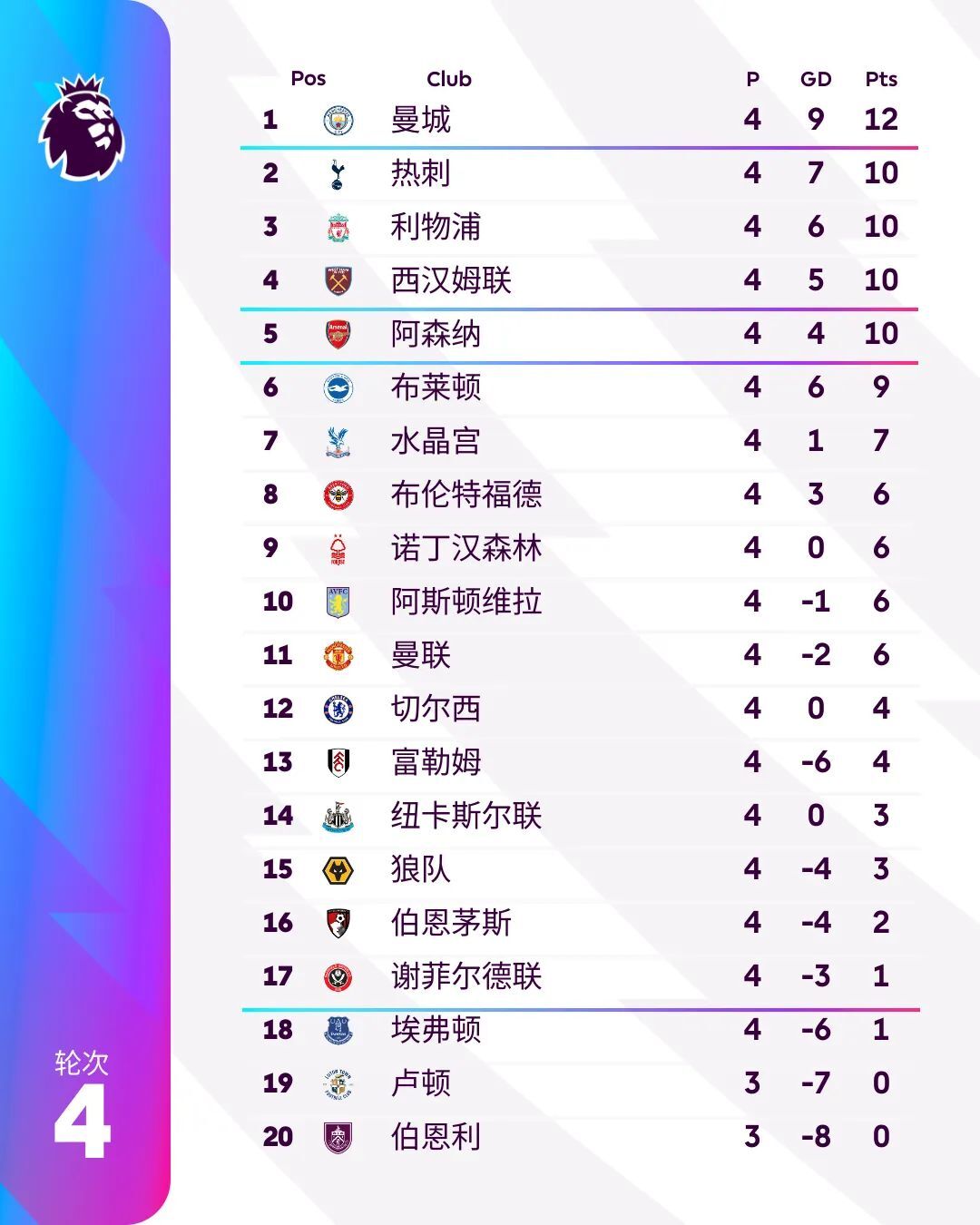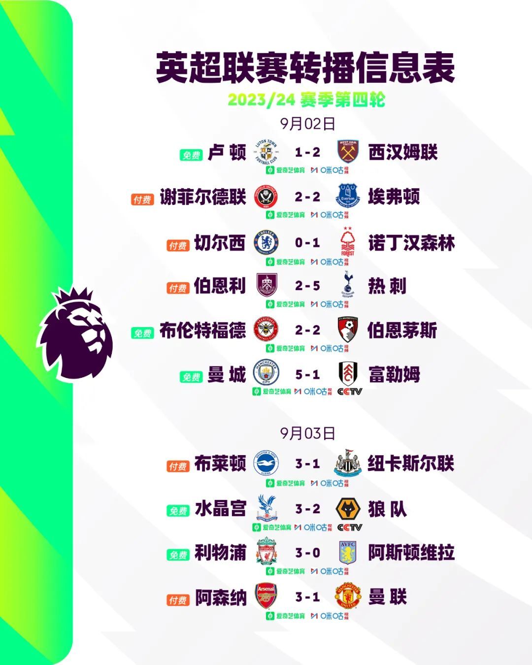 英超第4轮最后3场比赛结束:阿森纳3比1曼联、利物浦3比0阿斯顿维拉、水晶宫3比2狼队。