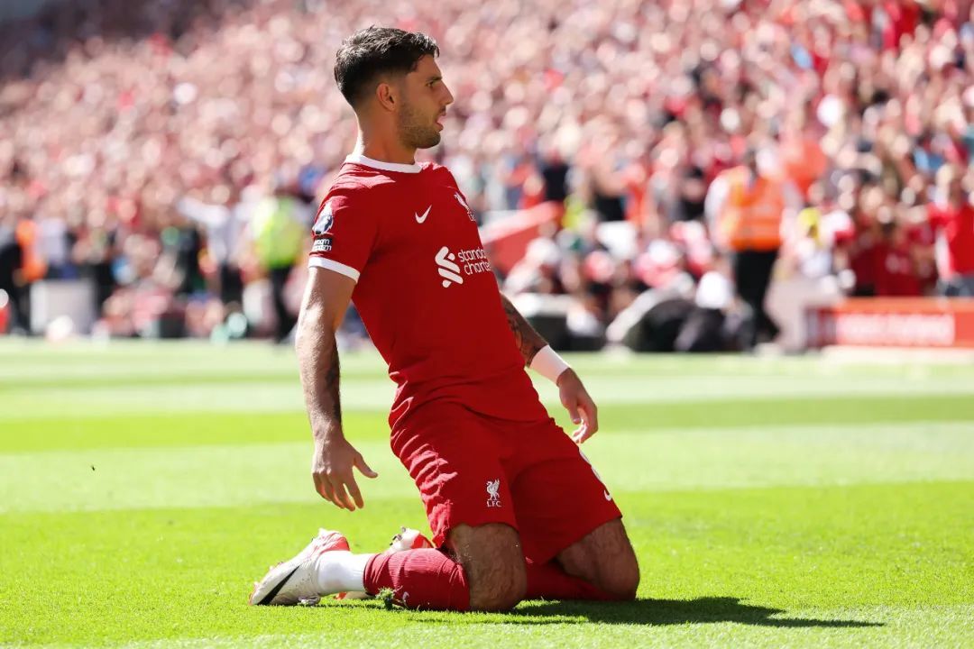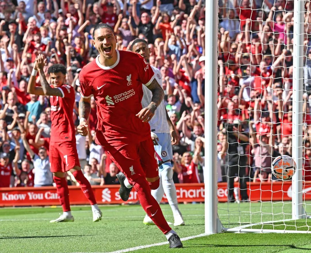 第22分钟,萨拉赫分球,努涅斯射门击中立柱反弹到卡什身上折射入网,乌龙球,2比0!