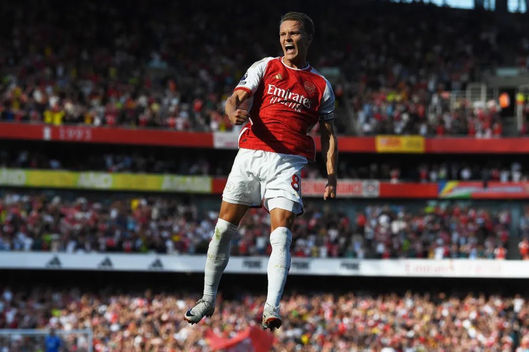 第28分钟,阿森纳左路配合,马丁内利横敲,厄德高推射破门,阿森纳闪电扳平,1比1!