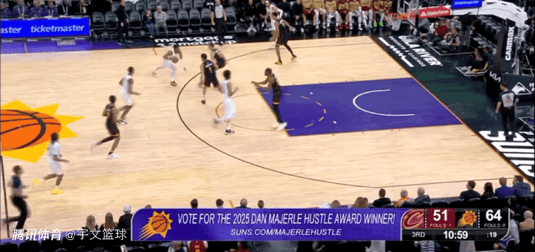次节比赛开始,琼斯三分打进,莫布利勾手得分,琼斯三分再进,杰洛姆突破抛投。太阳连进4记三分,打出一波14-4的进攻高潮,成功拉开分差到双位数。梅里尔上篮得分,琼斯跳投打进,韦德三分命中,邓恩补篮得手。韦德三分再进,杜兰特三分回应,太阳打出一波7-0的进攻高潮。亨特急停跳投,杜兰特中投命中,米切尔突破上篮。半场比赛结束,骑士51-62落后太阳。