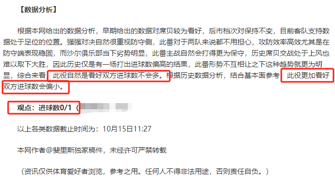(温馨提示:观点回顾为已完场赛事的统计,并不能代表未来的观点预测结果走势,观点仅为其个人意见,与平.台无关。资讯仅供体育爱好者浏览,并不构成购.彩建议,任何人不得用于非法用途,请广大用户理性消费。)