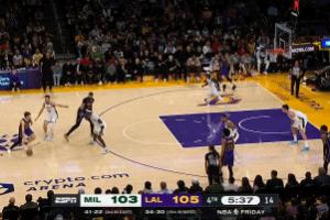 DLO!拉塞尔假动作晃飞贝弗利 撤步三分命中 老里被迫喊停