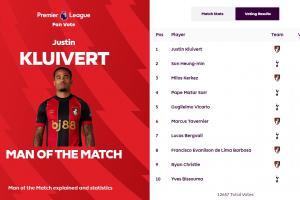 送出助攻!英超官方:小克鲁伊维特当选伯恩茅斯2-2热刺全场最佳