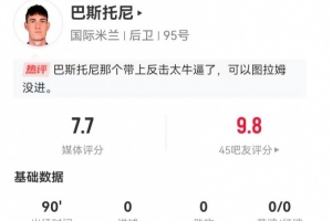 巴斯托尼客串左翼卫数据:4关键传球+2射门 6对抗5成功 获评7.7分巴斯托尼客串左翼卫数据:4关键传球+2射门 6对抗5成功 获评7.7分