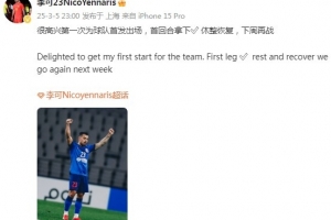 李可社媒庆祝胜利:很高兴第一次为申花首发出场,首回合拿下✅