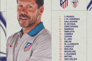 马竞公布对阵毕尔巴鄂竞技名单:格列兹曼领衔,阿尔瓦雷斯在列