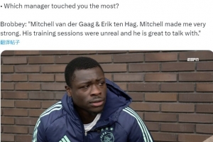 阿贾克斯前锋:滕哈赫是对我影响最大的教练之一