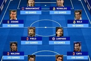 德转列安切洛蒂执教传奇阵:C罗伊布齐达内在列,米兰5人入选