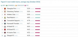 中超又领跑❗全球球队阵容稳定性:海港第一,泰山第二,皇马第四中超又领跑❗全球球队阵容稳定性:海港第一,泰山第二,皇马第四